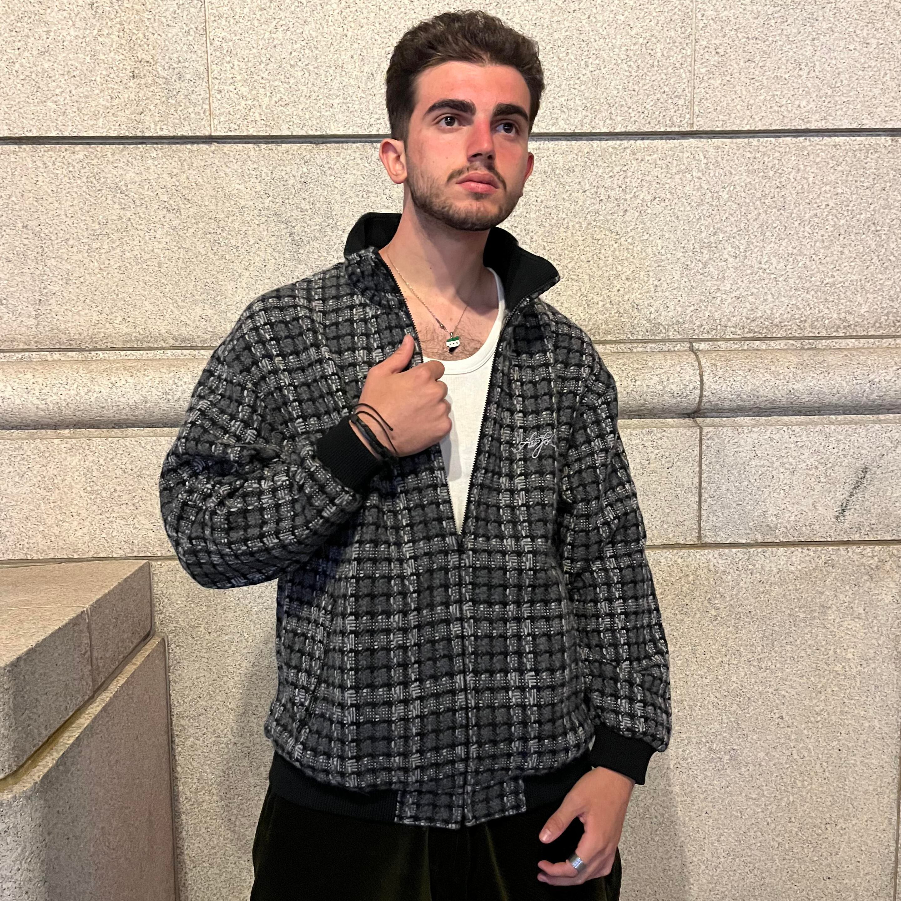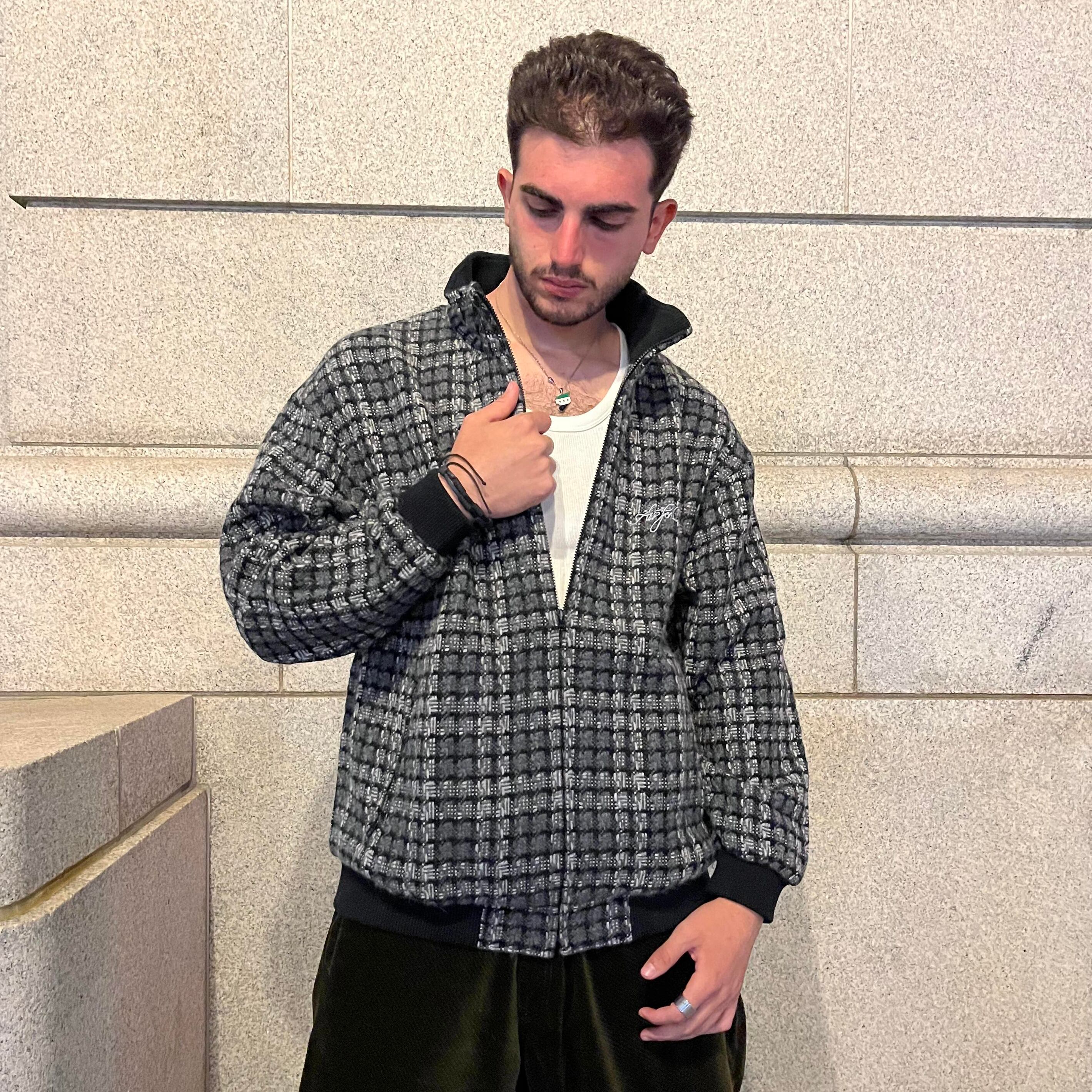 手作り感が詰ったニット素材 ジップジャケット。