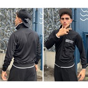 シンプルでありながら、洗練されたデザインのトラックジャケット!フロントには、ブランドのアイコニックなロゴがさりげなく配置されており、全体のスタイルを引き立てています。背中には装飾がなく、クリーンでスタイリッシュな印象を与えます。